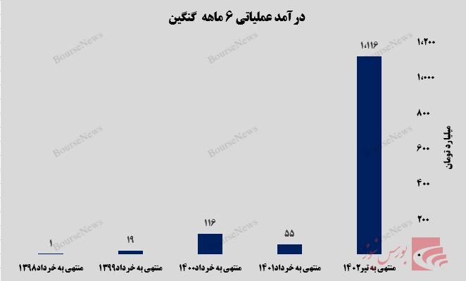 سود ناخالص شرکت " گنگین " در این دوره ۶ ماهه با افزایش ۳ هزار و ۶۰۰ درصدی همراه بوده است که توانسته ۸۰۰ میلیارد تومان، از این محل کسب کند.
