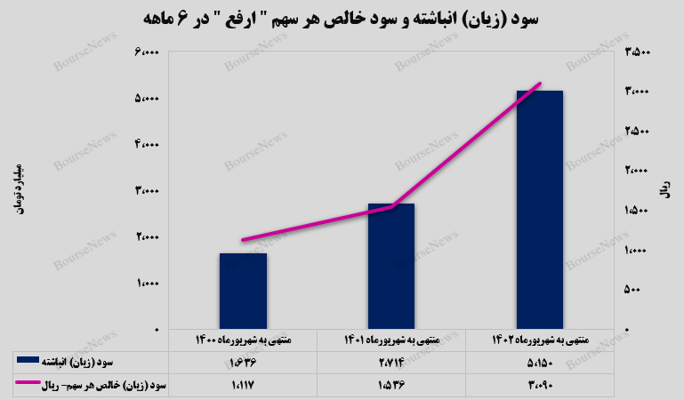 "ارفع" در پایان شهریورماه که دوره ۶ ماهه خود را سپری کرده است، موفق به ثبت ۵ هزار و ۱۵۰ میلیارد تومان سود انباشته شده است که ۲ هزار و ۴۳۶ میلیارد تومان بیشتر از دوره مشابه سال گذشته است.