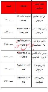 بر اساس این گزارش، آخرین قیمت موبایل و تلفن همراه در روز جاری به شرح زیر است: