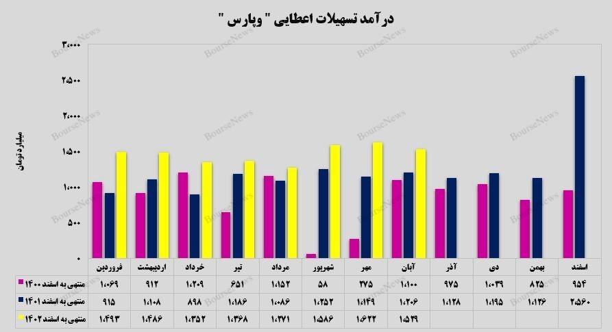 عمده‌ترین درآمد "وپارس" در این ماه متعلق به «مرابحه» و مبلغ به ثبت رسیده در این بخش برابر با ۹۶۰ میلیارد تومان بود. درآمدی که بانک پارسیان از بخش «مرابحه» به همراه داشت ۶۳ درصد از کل درآمد‌های شناسایی‌شده در آبان ماه را به خود اختصاص داد. از دیگر بخش‌های درآمدزا از قسمت تسهیلات اعطایی می‌توان به «تسهیلات ارزی» و «مشارکت مدنی» با ۲۹۳ و ۱۵۷ میلیارد تومان اشاره کرد. بخش‌های نام‌برده نیز ۱۹ و ۱۰ درصد از کل درآمد ماهانه را در اختیار داشته‌اند.