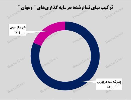 گروه توسعه مالی مهر آیندگان بیشترین سرمایهگذاری خود را در شرکتهایی انجام داد که در بازار سرمایه حضور داشتند. میزان سرمایهگذاری "ومهان" در شرکتهای خارج از بورس برابر با ۲ هزار و ۷۷۶ و شرکتهای پذیرفتهشده در بورس ۱۲ هزار و ۱۰۲ میلیارد تومان بود.