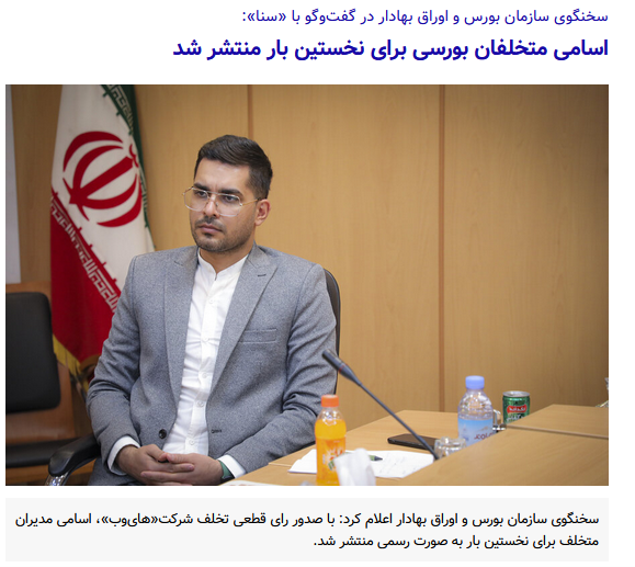 افتخاری دیگر برای سازمان بورس؟ " نخستین انتشار اسامی متخلفان بورسی "