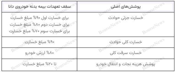 پوششهای اصلی بیمه بدنه دانا شامل موارد زیر است: