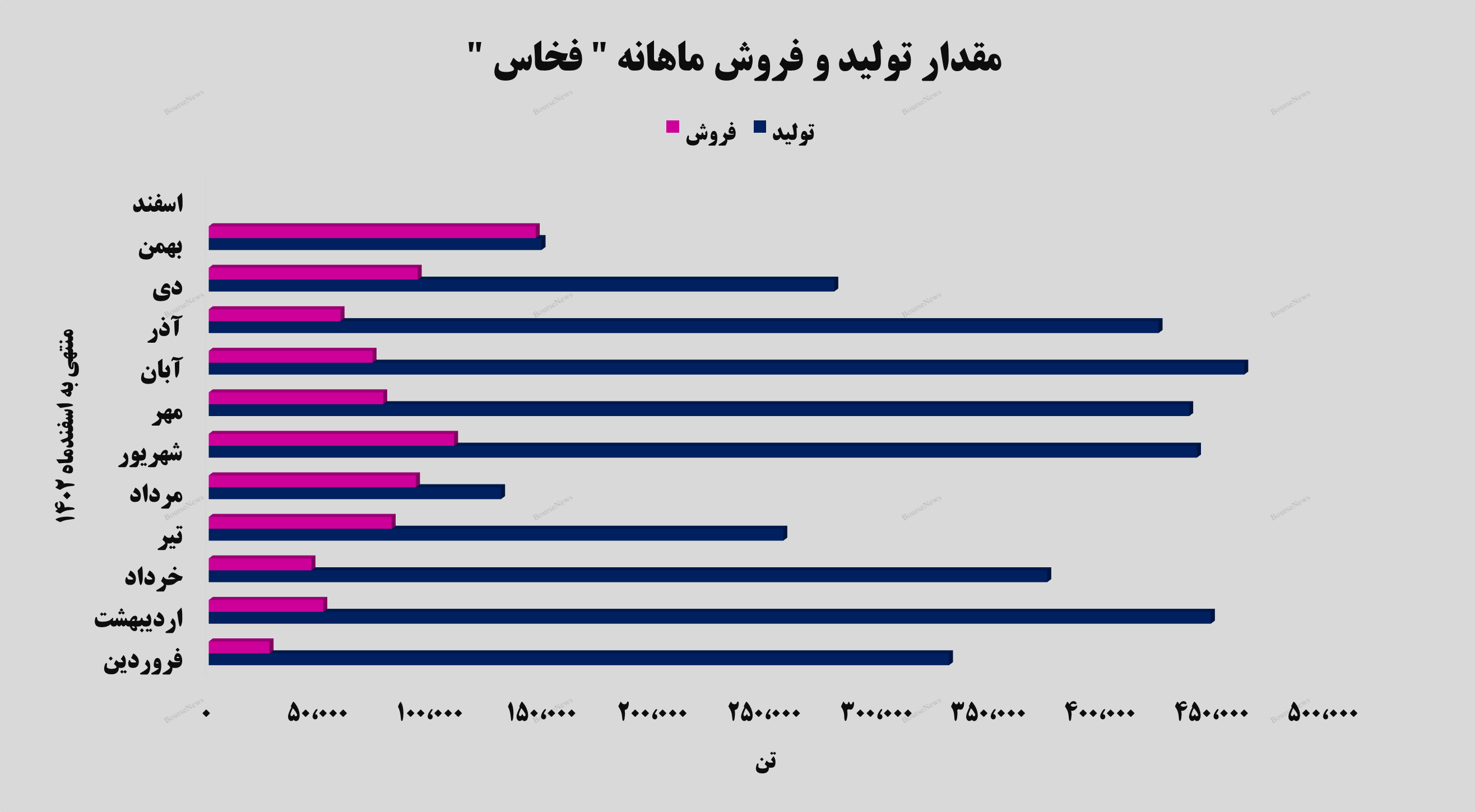 "فخاس" در بهمنماه ۱۴۸ هزار و ۸۴۸ تن محصول تولید کرد که موفق به فروش ۱۴۶ هزار و ۲۴۷ تن از محصولات تولیدی خود شد. مقدار فروش این شرکت نسبت به ماه گذشته با رشد ۵۶ درصدی همراه شد.