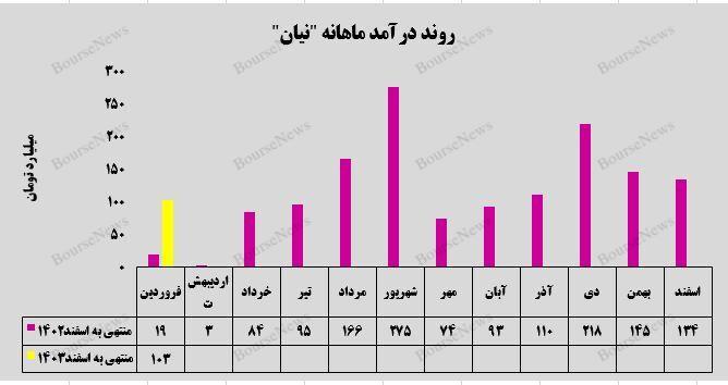 شرکت نیان الکترونیک با سرمایه ثبت شده ۱۴۲ میلیارد و ۷۰۰ میلیون تومانی، اقدام به انتشار گزارش عملکرد ماهانه منتهی به فروردین ماه کرده است که در این ماه درآمدی ۱۰۳ میلیارد تومانی را حاصل کرده است.