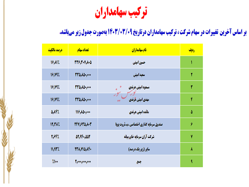 در روز چهارشنبه مورخ ۱۴۰۳/۰۳/۰۹ مجمع عمومی عادی سالیانه شرکت نشاسته و گلوکز آردینه با حضور سهامداران برگزار شد.