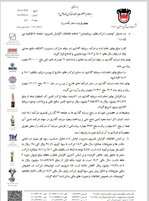 شرکت ذوب آهن اصفهان درخصوص اطلاعات و صورتهای مالی منتشر شده توضیح داد.