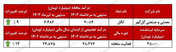 شرکت معدنی و صنعتی گلگهر با سرمایه ثبت شده ۳۸ هزار میلیاردتومانی و ارزش بازار ۱۳۰ هزار و ۲۴۷ میلیاردتومانی، در گزارش فعالیت ماهانه منتهی به مردادماه سال جاری نشان داد که اتفاقات خوبی پیش روی این شرکت قرار دارد.
