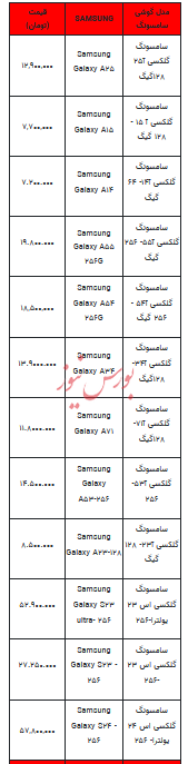 بر اساس این گزارش، آخرین قیمت موبایل و تلفن همراه در روز جاری به شرح زیر است: