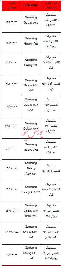 بر اساس این گزارش، آخرین قیمت موبایل و تلفن همراه در روز جاری به شرح زیر است: