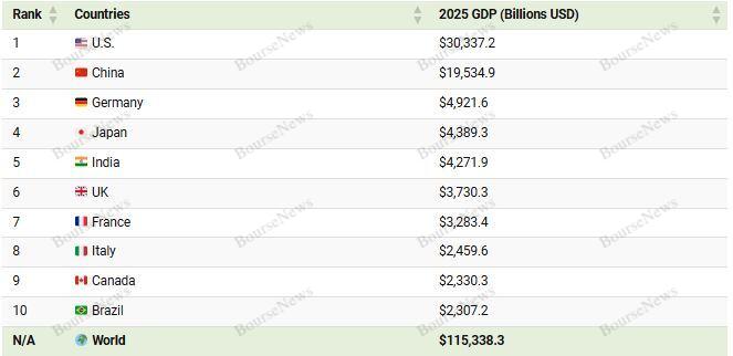 رتبهبندی کشورها بر اساس تولید ناخالص داخلی در سال ۲۰۲۵