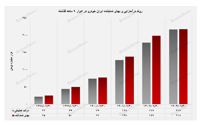 در انتهای گزارش لازم به ذکر است که شرکت ایران خودرو در آخرین صورت مالی میاندوره ۹ ماههای که از خود برجای گذاشت به درآمد عملیاتی ۲۱۷ هزار میلیارد تومانی دست پیدا کرد که در مقایسه با دوره مشابه سال گذشته رشد ۲۱ درصدی را پشت سر گذاشت. در این گزارش از عملکرد ۹ ماهه ایران خودرو در حوزه کاهش فاصله زیاندهی رونمایی شد.