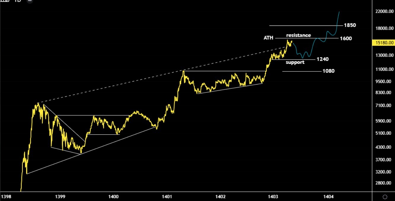 همان روزها بود که قیمت با تقاضای بسیار زیادی مواجه شد و با یک رشد ۲۲۵ درصدی به محدوده ۳ هزار و ۲۹۰ تومان رسید و در آن ناحیه، یک ATH تشکیل داد. موج، حدودا ۱۰۰ درصد بیشتر از رقبا بازدهی سالانه داشته است که عملکرد مطلوب مدیران صندوق و گروه مالی فیروزه را نشان میدهد. قیمت یک ماه گذشته، ترندلاین نزولی خود را شکست و اکنون بر روی حمایت ۲ هزار و ۷۵۰ تومان قرار دارد که با حفظ آن میتواند رشد بیشتری را تجربه کند. با توجه به رشد فزایندهای که قیمت داشته به نظر میرسد حمایت قوی ۲ هزار و ۱۵۰ تومان، مناسب سرمایهگذاری باشد.