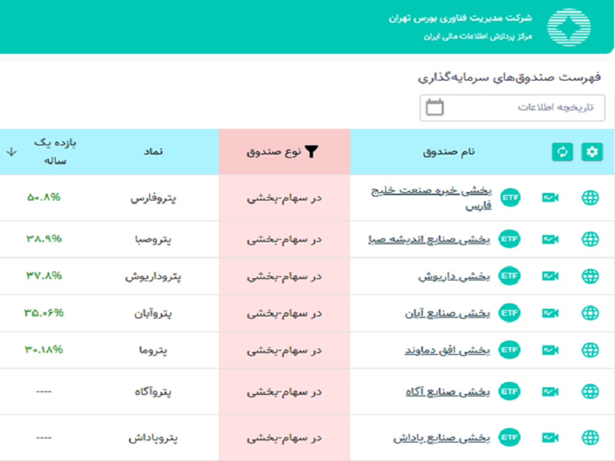 به گزارش بورس نیوز، در جدیدترین مقایسه بازدهی صندوقهای بخشی پتروشیمی و بر اساس آمار ارائه شده توسط سایت مرکز پردازش اطلاعات مالی ایران، صندوق بخشی پتروشیمی خلیج فارس با نماد "پتروفارس" با ثبت بازدهی ۵۰.۸ درصدی، بیشترین بازدهی یکساله را در بین صندوقهای بخشی پتروشیمی داشته است.