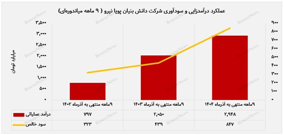 در نهایت، سود خالص شرکت دانش‌بنیان پویا نیرو در ۹ماهه منتهی به آذرماه ۱۴۰۴ به ۸۴۷ میلیارد تومان رسیده است؛ رقمی که نسبت به سود خالص ۴۳۹ میلیارد تومانی سال گذشته، رشد ۹۳ درصدی را نشان می‌دهد. این سطح از رشد سود خالص، بپویا را در زمره شرکت‌های با عملکرد درخشان سال جاری قرار می‌دهد.