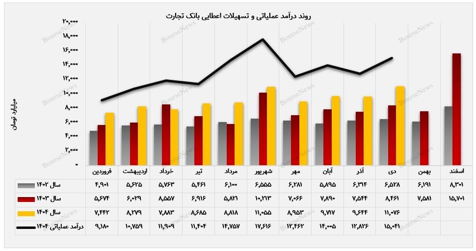 بانک تجارت در دیماه موفق شد کاهش یکدرصدی درآمد آذرماه را جبران کرده و بار دیگر در مسیر صعودی قرار بگیرد. "وتجارت" در این ماه رشد ۱۵ درصدی درآمد را به ثبت رسانده است. بررسی جزئیات نیز نشان میدهد درآمد تسهیلات اعطایی نسبت به دوره مشابه سال گذشته با رشد ۳۱ درصدی همراه بوده که بیانگر بهبود مستمر عملکرد اعتباری بانک است.