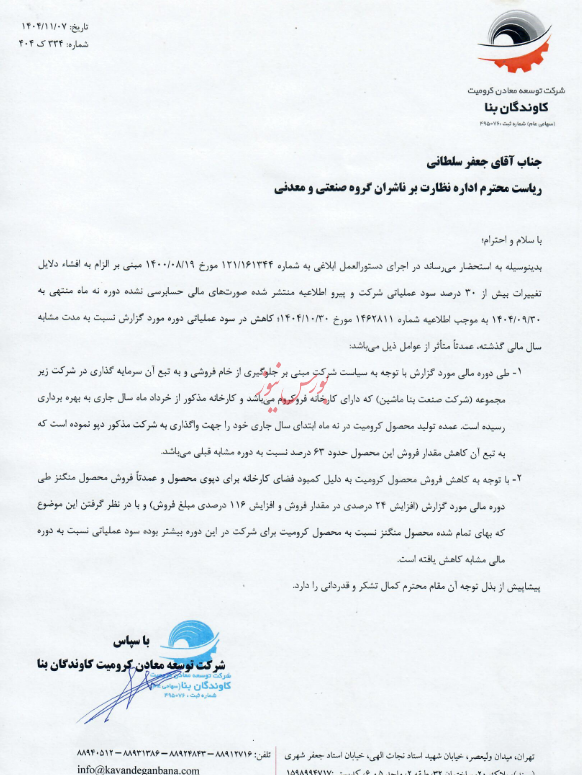 شرکت توسعه معادن کرومیت کاوندگان بنا درخصوص تغییرات ببش از ۳۰ درصدی سود عملیاتی توضیح داد.